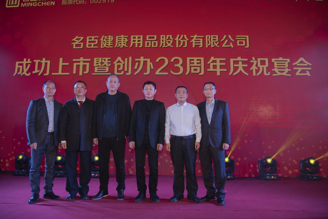 12月21日晚,名臣健康用品股份有限公司在公司总部隆重举行“名臣健康首次公开发行A股上市暨创办23周年庆祝酒会”。出席今晚庆祝酒会的有公司董事长陈勤发,公司副董事长许绍壁,公司董事、副总经理彭小青,公司董事、副总经理林典希,公司副总经理余建平,公司董事会秘书陈东松,以及地方政府领导、汕头相关行业协会的领导,名臣健康的经销商、供应商代表、社会各界朋友嘉宾、公司各级员工1800多人。与会嘉宾欢聚一堂,举杯相庆,共襄名臣发展史上这一盛举。